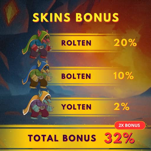 Your Skin Bonuses are now DOUBLED ๐ฅ ๐ NOW 32% BONUS ๐ ๐ด Rolten = 20% Total = 32% point bonus! We always think of how we can make our players happy, and reward those that have been with us for a while even more ๐ค